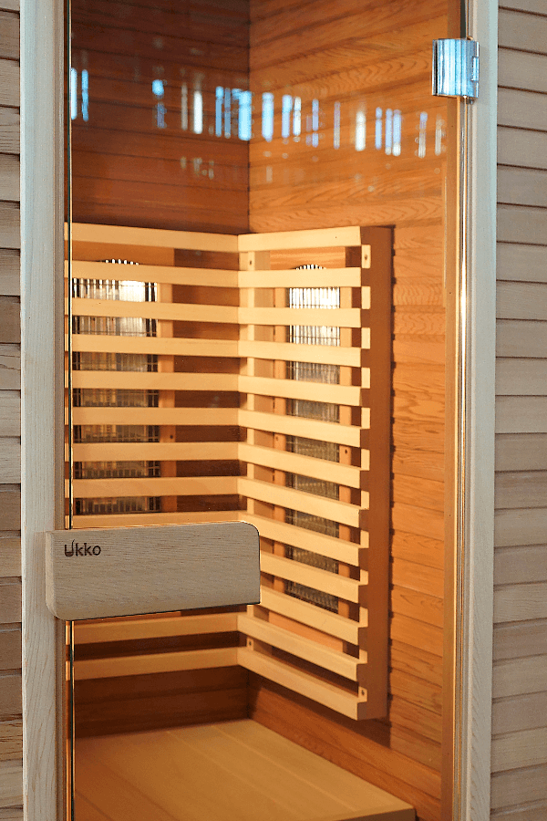 UKKO saunas come equipped and fitted with a cutting-edge touch panel using the Touch Me system which can be controlled not just by gentle touch, but also with a comfortable remote control unit. The synthetic parts of the unit and control panel are made with material resistant to high temperature and humidity.