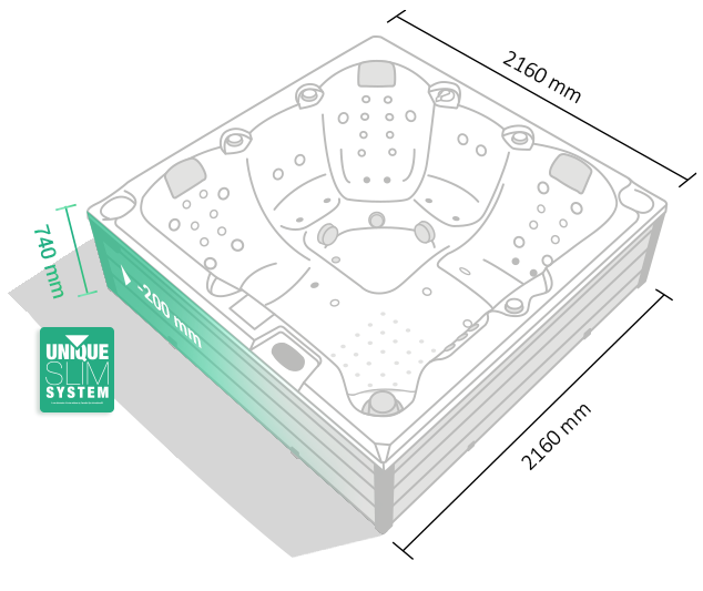 It’s not just about the number of jets – but where and how they work. Thanks to the patented Skeleton Free Jets technology, the hydromassage targets specific muscle groups without affecting the natural spinal axis.