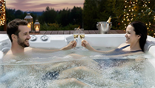 The audio system is equipped with two retractable speakers hidden inside the hot tub structure.