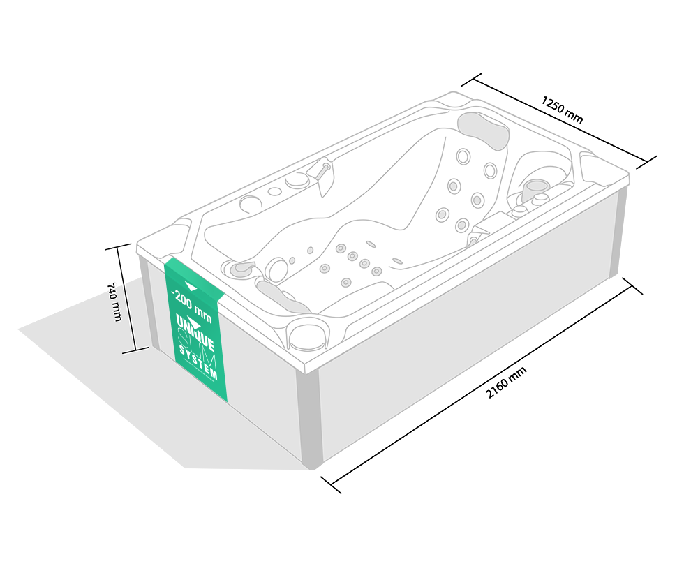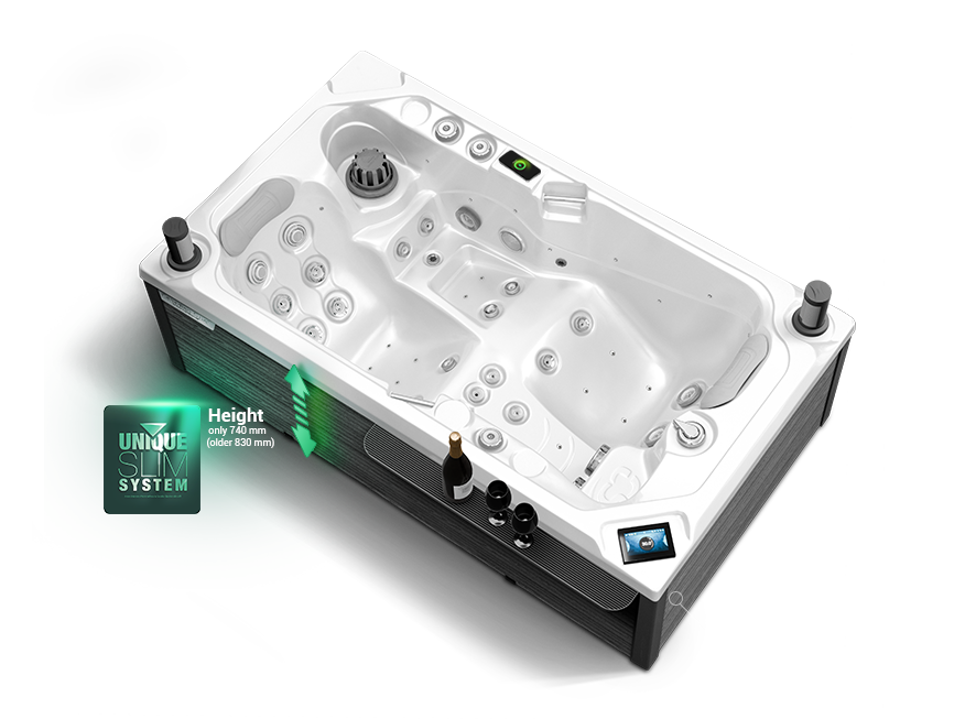 An elegant slim design that saves space while maintaining the full comfort of a luxury SPA. Minimalism in perfect balance with a premium experience.
